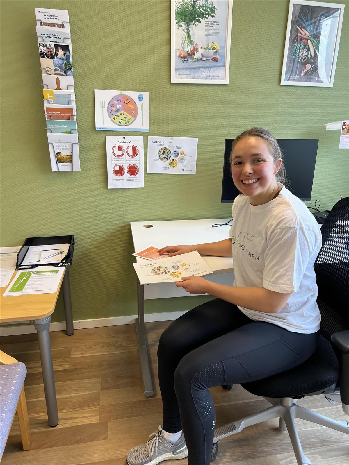 Maria bruker resultatene fra undersøkelsen som grunnlag for en god samtale om kosthold og livsstil.Start med én ting og realistiske mål