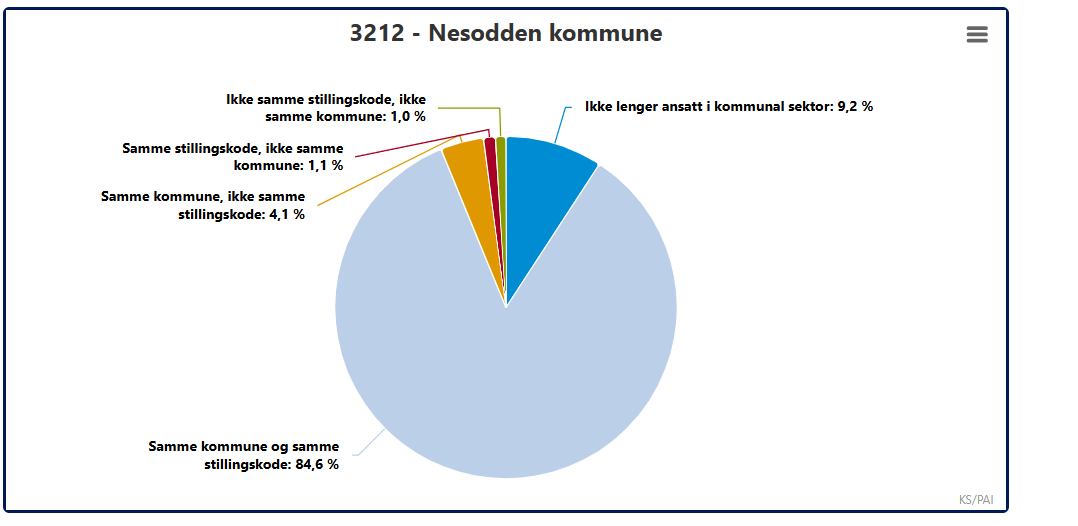 Nasjonalt ble 80,4 prosent værende i samme kommune og samme stilling. På Nesodden gjelder dette 84,6 prosent. Det tallet vi som arbeidsgivere i Nesodden kommune er mest opptatt av, er likevel hvor mange som blir værende i samme kommune fra ett år til det neste. For Nesodden er dette tallet 88,7 prosent.