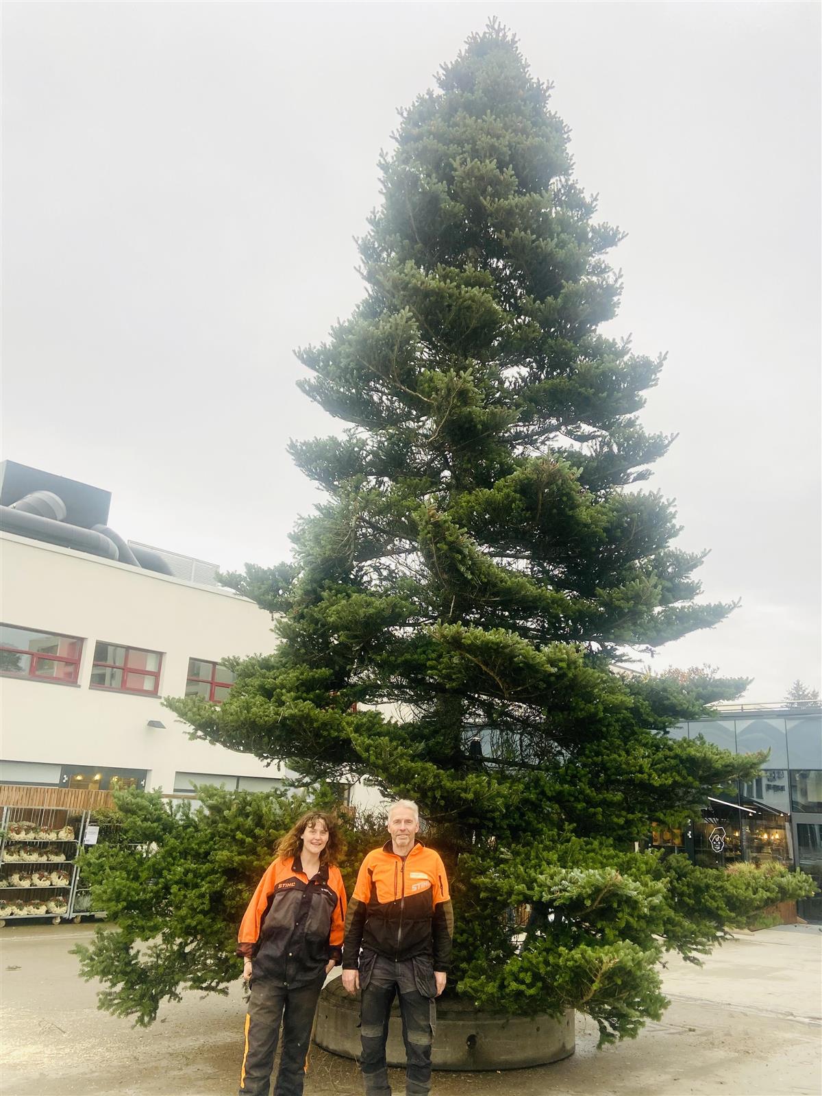 Vi ser etter en gran på ca. 12–14 meter, som er fyldig og jevn, uten altfor grove og spredte grener - slik at treet står stødig og pent når det kommer på plass i juletrefoten.