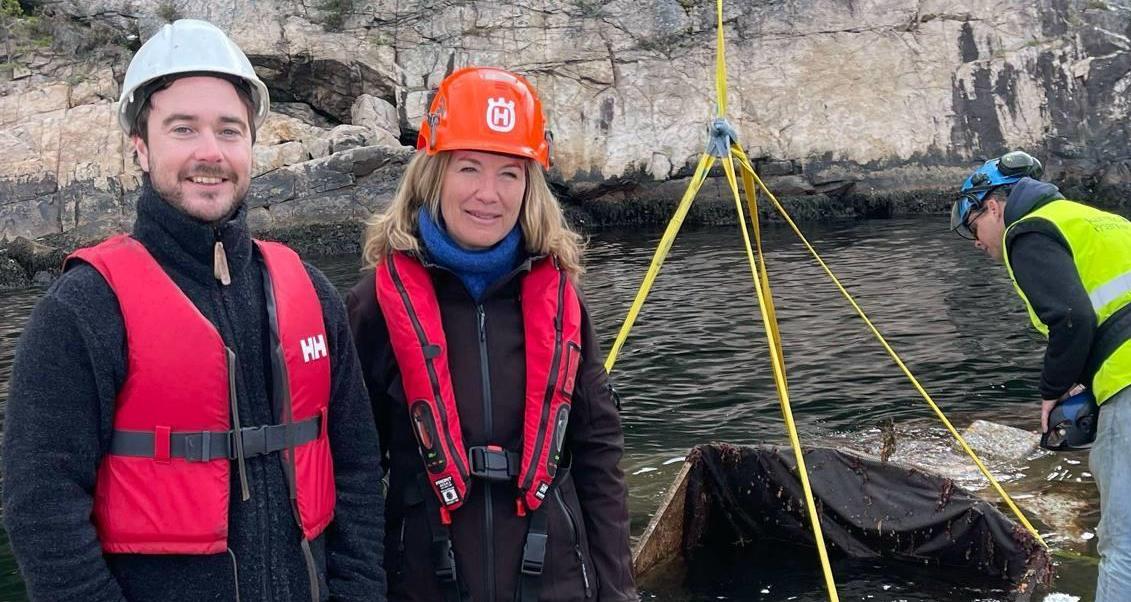 Kampen for å redde Oslofjorden er viktig for både ordfører Cathrine Kjenner Forsland og miljørådgiver Martin Moi Stener. Her er de med på å heve et av de mange båtvrakene som forrurenser fjorden vår.