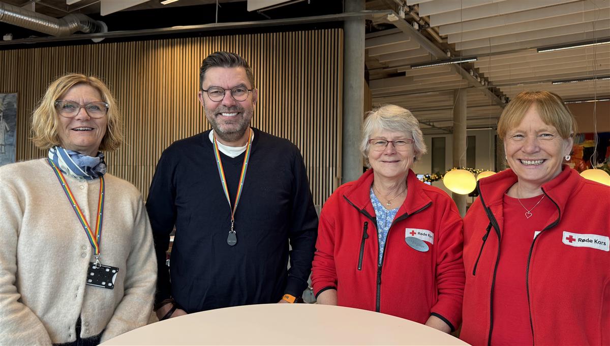 Endelig er den formelle avtalen på plass. Fra venster Berit Soløy, kommunedirektør Hogne Eidissen, leder for Nesodden Røde Kors, Margaret Heggen og nestleder Bente Haugland.