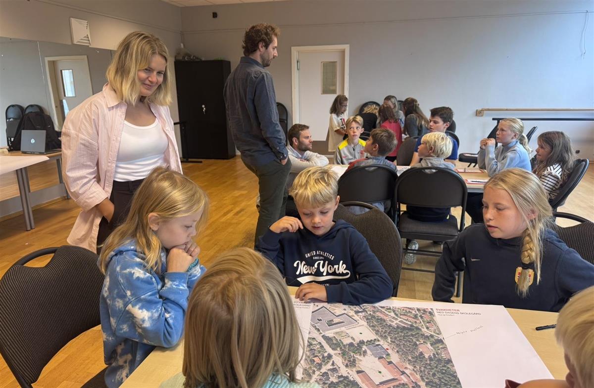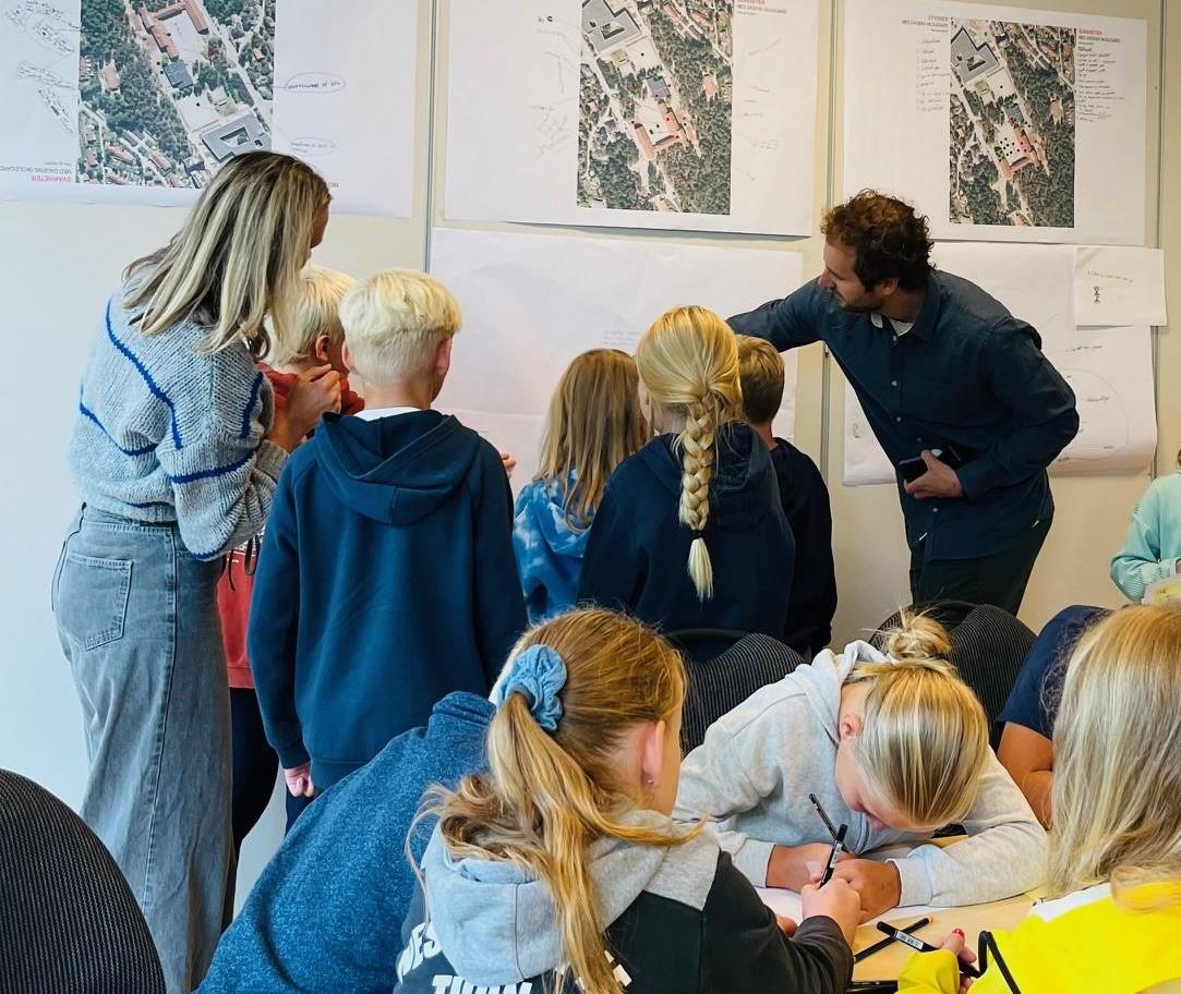 Arkitekt og landskapsarkitekt får gode råd fra barna som skal bruke området.