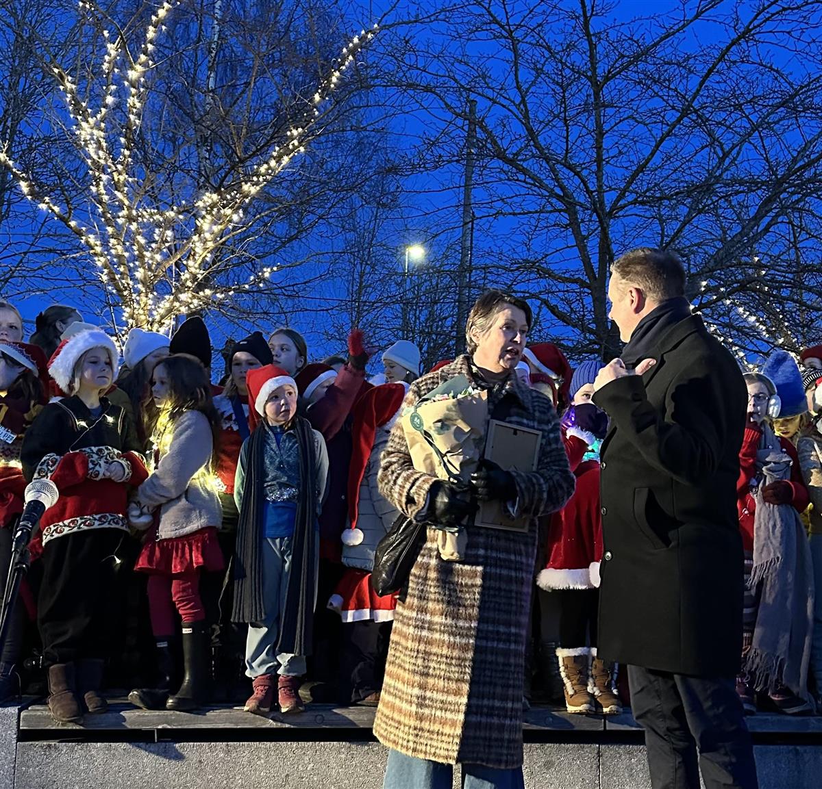 Mot slutten av programmet samlet store og små seg til tale fra ordfører Cathrine Kjenner Forsland og nedtelling til årets store øyeblikk - tenningen av julegranen.